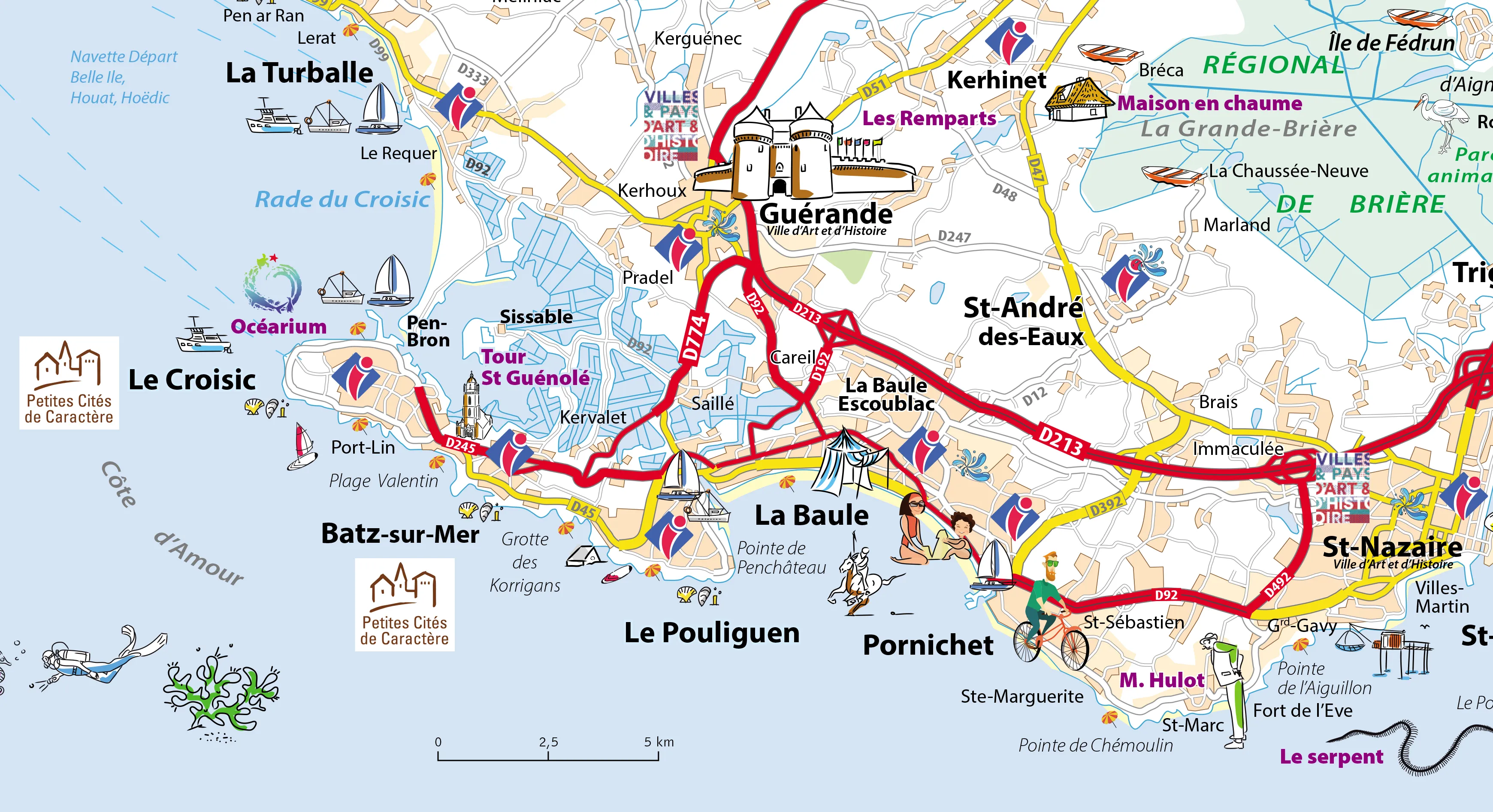 Vers l'ouest, ce sera la côte sauvage du Croisic, les marais salants de Guérande, la pointe du Pouliguen...