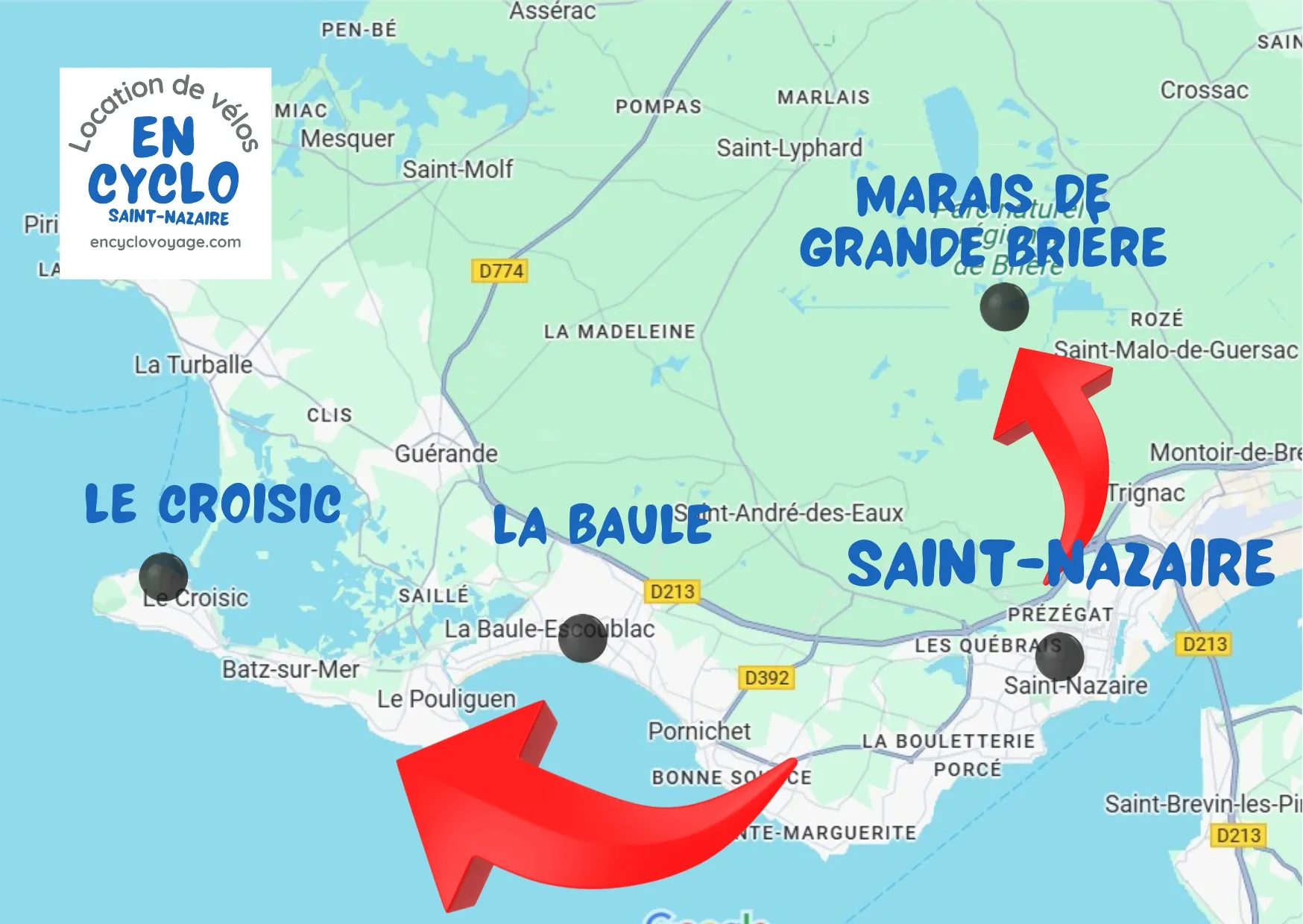 Au départ de Saint-Nazaire, les itinéraires vélo de EN CYCLO vous conduiront loin du bruit, sur des voies calmes ou sécurisées.
